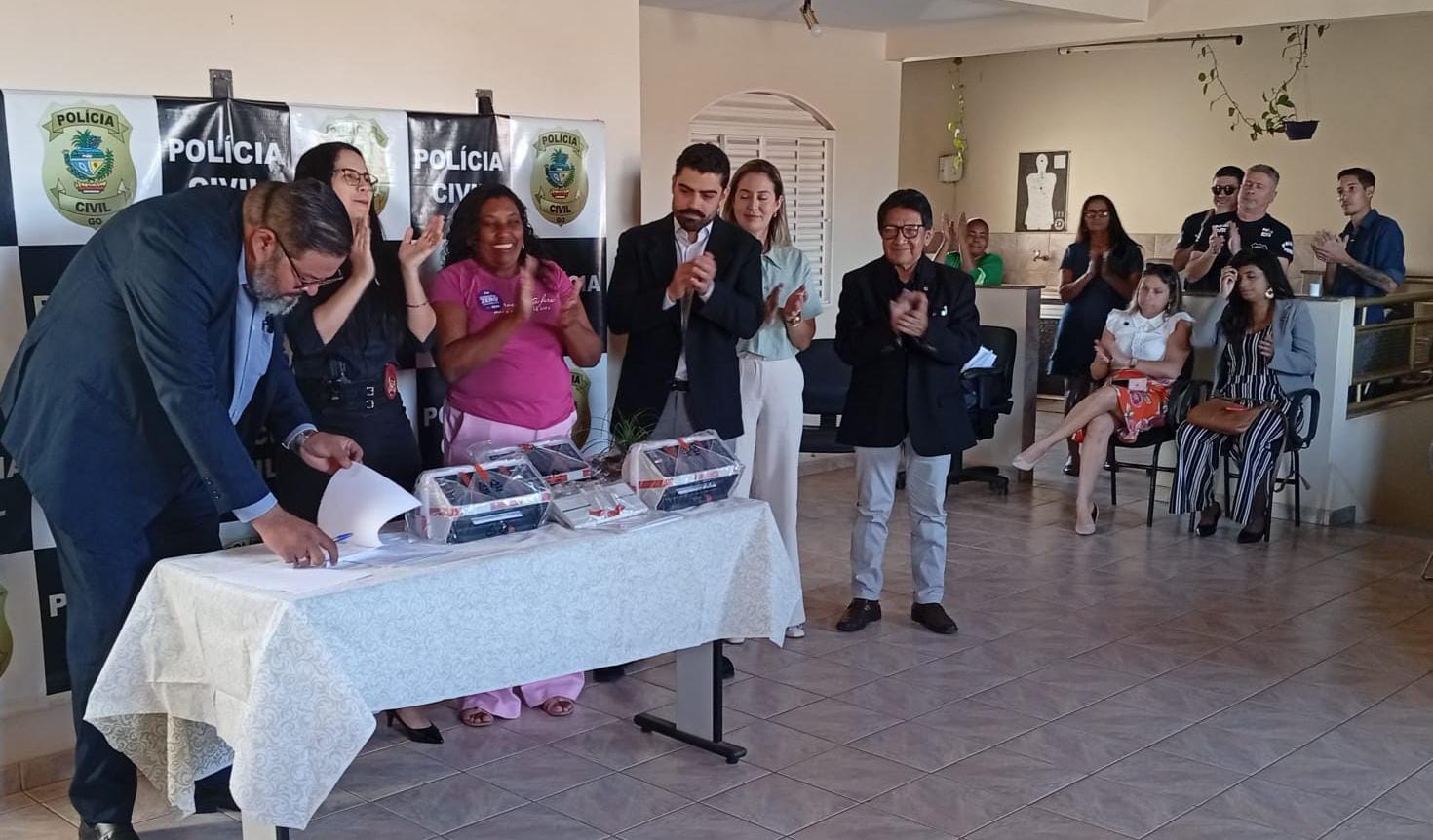 Em sua fala, a delegada titular da DEAM de Valparaíso de Goiás, Dra. Samya, expressou a gratidão da delegacia e ressaltou o impacto da doação: “Essa doação do Conselho da Comunidade chega em um momento crucial para nós. Os scanners são ferramentas de última geração que vão otimizar, de forma significativa, nosso trabalho diário. Com eles, podemos agilizar o processamento de documentos, o que nos permite focar ainda mais no atendimento humanizado às vítimas e na investigação, garantindo um combate mais eficiente e rápido à violência contra a mulher.”
