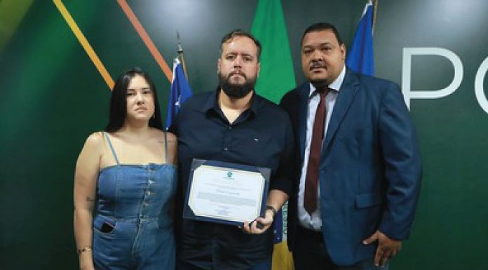 Na sessão plenária desta quinta-feira (11), o presidente do Legislativo valparaisense, vereador Walison Lacerda, entregou ao jovem Lucas Carpaneda uma Moção de Pesar, pelo falecimento de sua mãe, senhora Wânia Carpaneda. Na ocasião Lucas esteve acompanhado da esposa e amiga de todas as horas, Ana Carolina Ferreira de Silos.