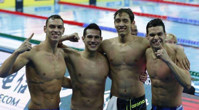 O Brasil voltou a brilhar em uma prova de revezamento no Mundial de Natação em Piscina Curta (25 metros), realizado em Hangzhou, na China. Nesta sexta-feira, a equipe nacional surpreendeu na disputa masculina do 4x200 metros livre ao faturar a medalha de ouro e ainda quebrar o recorde mundial da prova com a marca de 6min46s81.