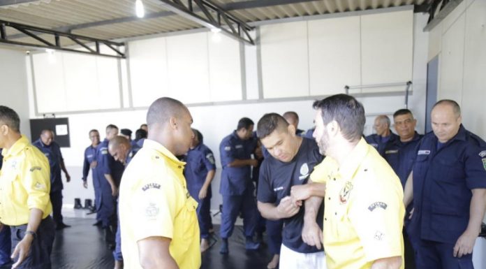 Os agentes da Guarda Municipal e da Agencia de Transito de Valparaíso de Goiás realizaram um treinamento com o equipamento tonfa (cassetete) com o Batalhão do Choque da Polícia Militar, no bairro Cidade Jardins.