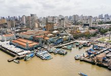 O mapa de velocidade do Waze mostra que o trânsito começa a ficar engarrafado na região. Às 17h47, a fila de carros já chegava à Avenida das Nações, deixando o tráfego lento nos dois sentidos na L4 Norte.