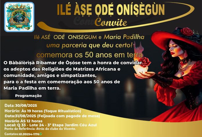 A festa tem início neste sábado, 30 de agosto de 2025, às 19h, com um toque ritualístico que deve emocionar adeptos, simpatizantes e convidados. O encontro simboliza a resistência cultural e espiritual de uma religião que, mesmo diante da intolerância sofrida ao longo do tempo, segue firme na defesa de seus valores e na propagação da diversidade religiosa.