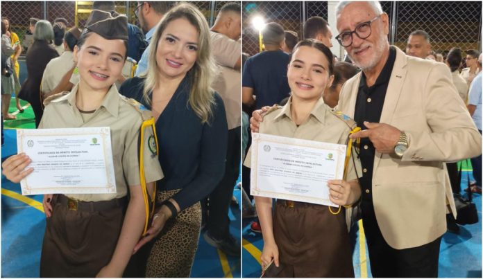 Entre os estudantes homenageados, Ana Beatriz Soares de Abreu brilhou como uma das alunas mais dedicadas e disciplinadas da instituição. Sua conquista foi motivo de grande orgulho para a família Moura, tradicional do Rio Grande do Sul, que há anos carrega consigo valores de honra, educação e amor à pátria.