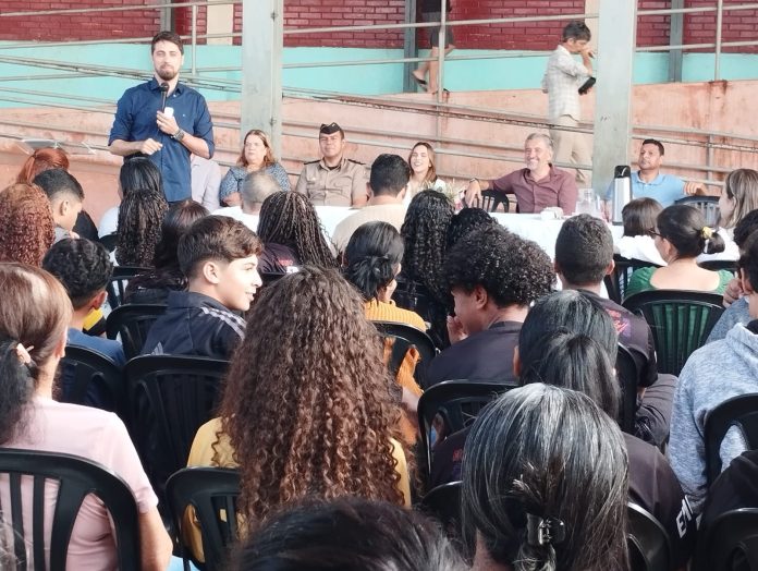Em sua fala, o prefeito Marcus Vinícius foi calorosamente ovacionado pelos estudantes e conduziu um bate-papo que evidenciou a forte conexão e o alto nível de interação entre a juventude valparaisense e o governo municipal.